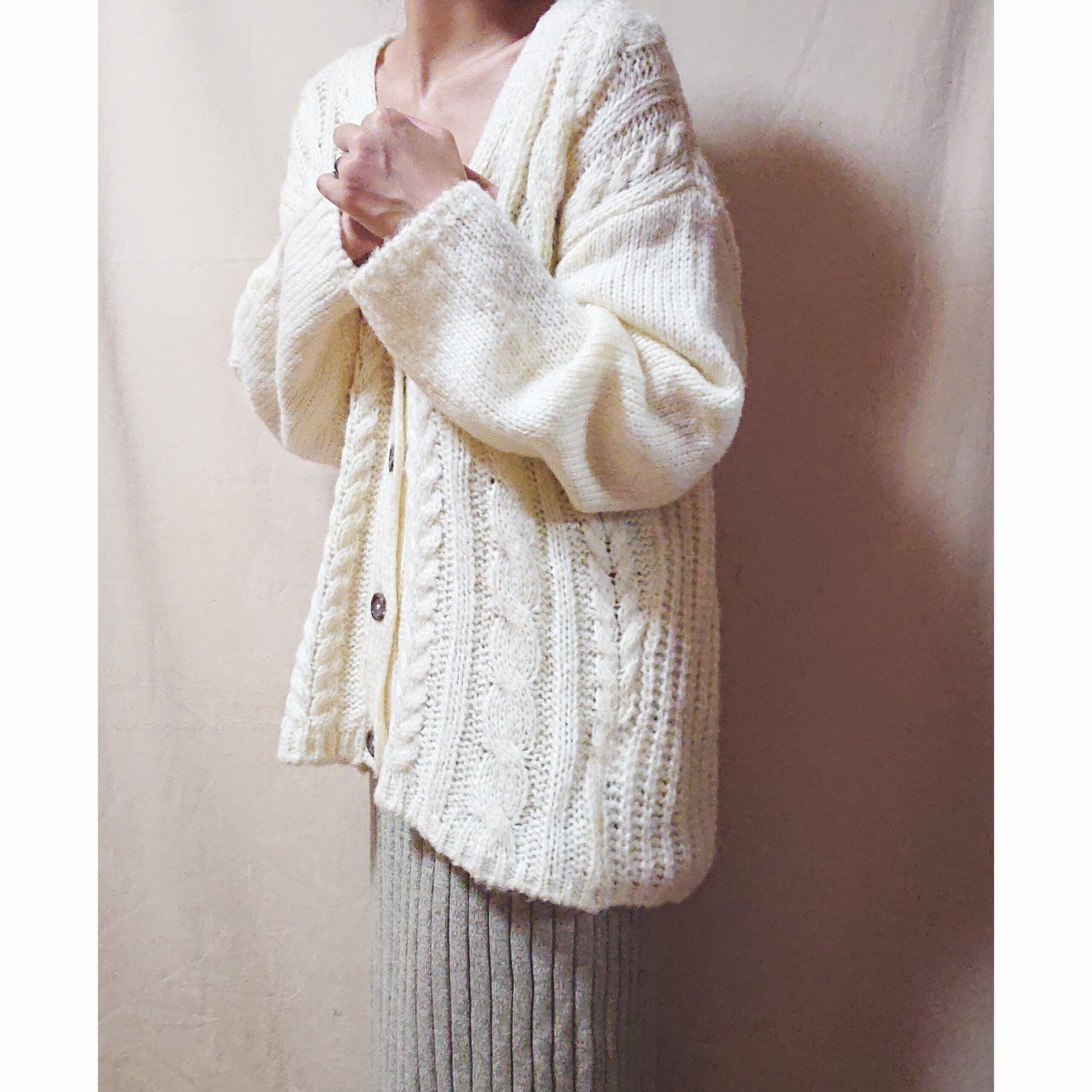 ケーブル編みがたまらなく可愛い、vintageのニットカーディガンです。