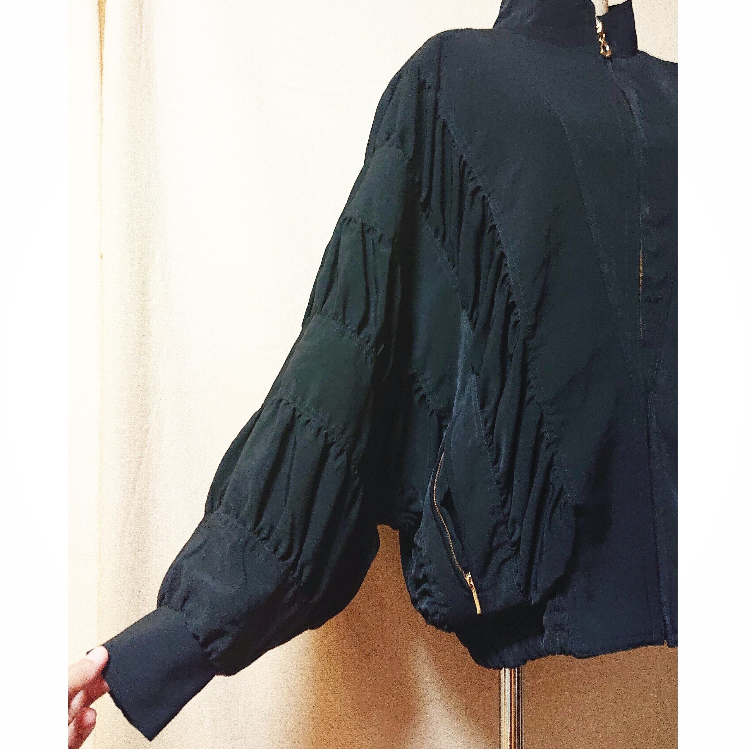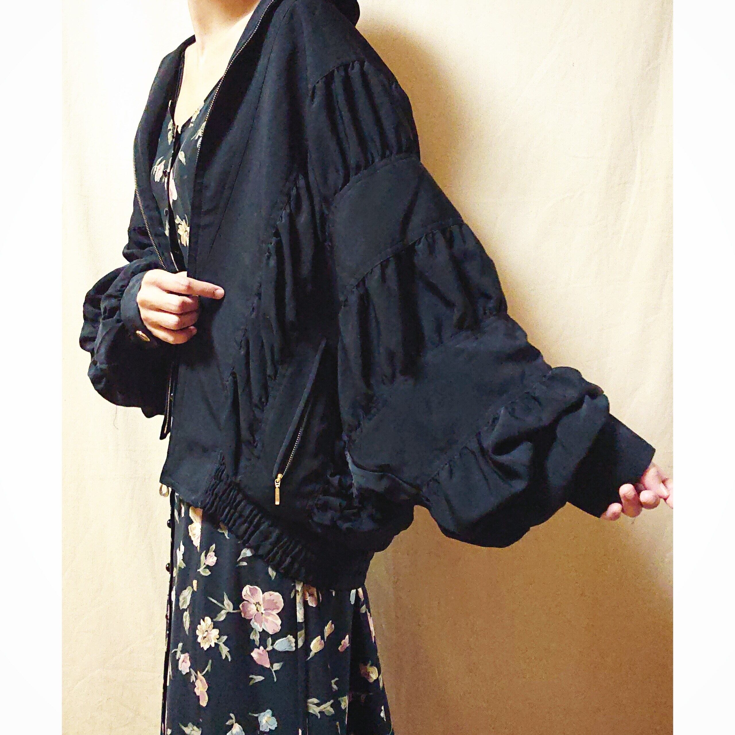 存在感のあるボリュームたっぷりのバルーンスリーブに、シャーリングデザインがプラスされた個性的でおしゃれ感たっぷりなブルゾンです。