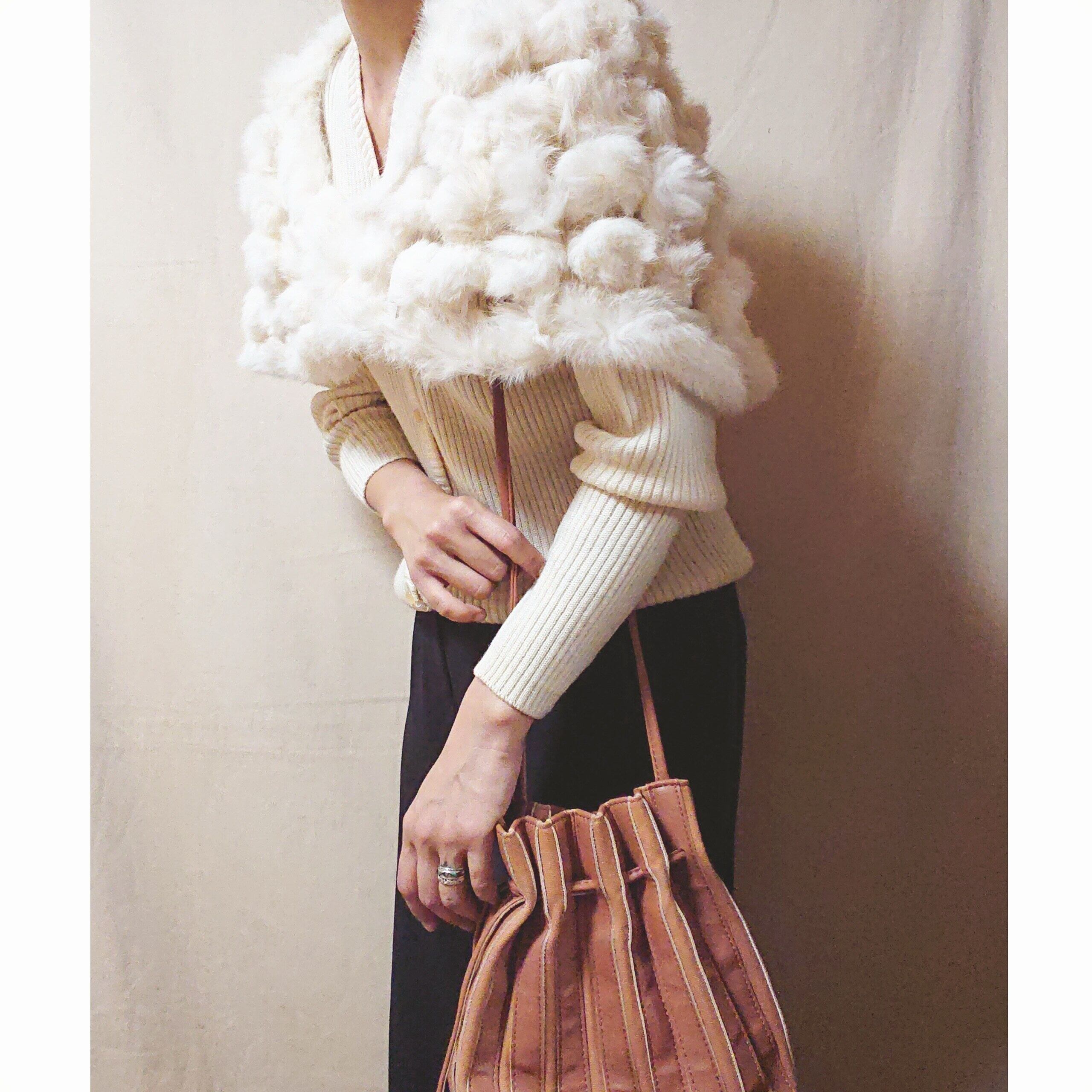 柔らかいラビットファー素材のケープで、お洋服のアクセント使いに大活躍して頂けます。