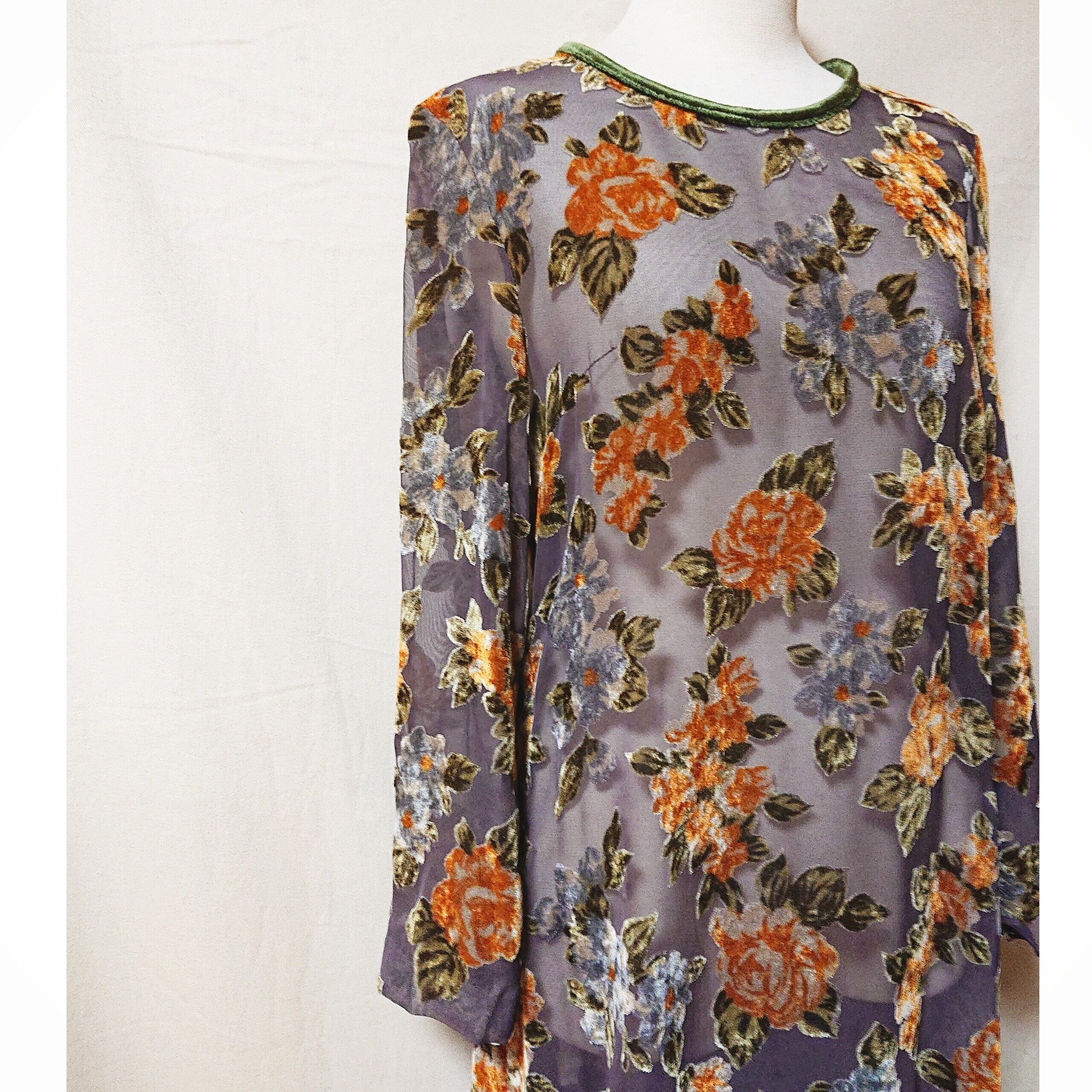 透け感のあるシアータイプのワンピースで、花柄でも甘すぎない大人っぽいデザインのワンピースです。