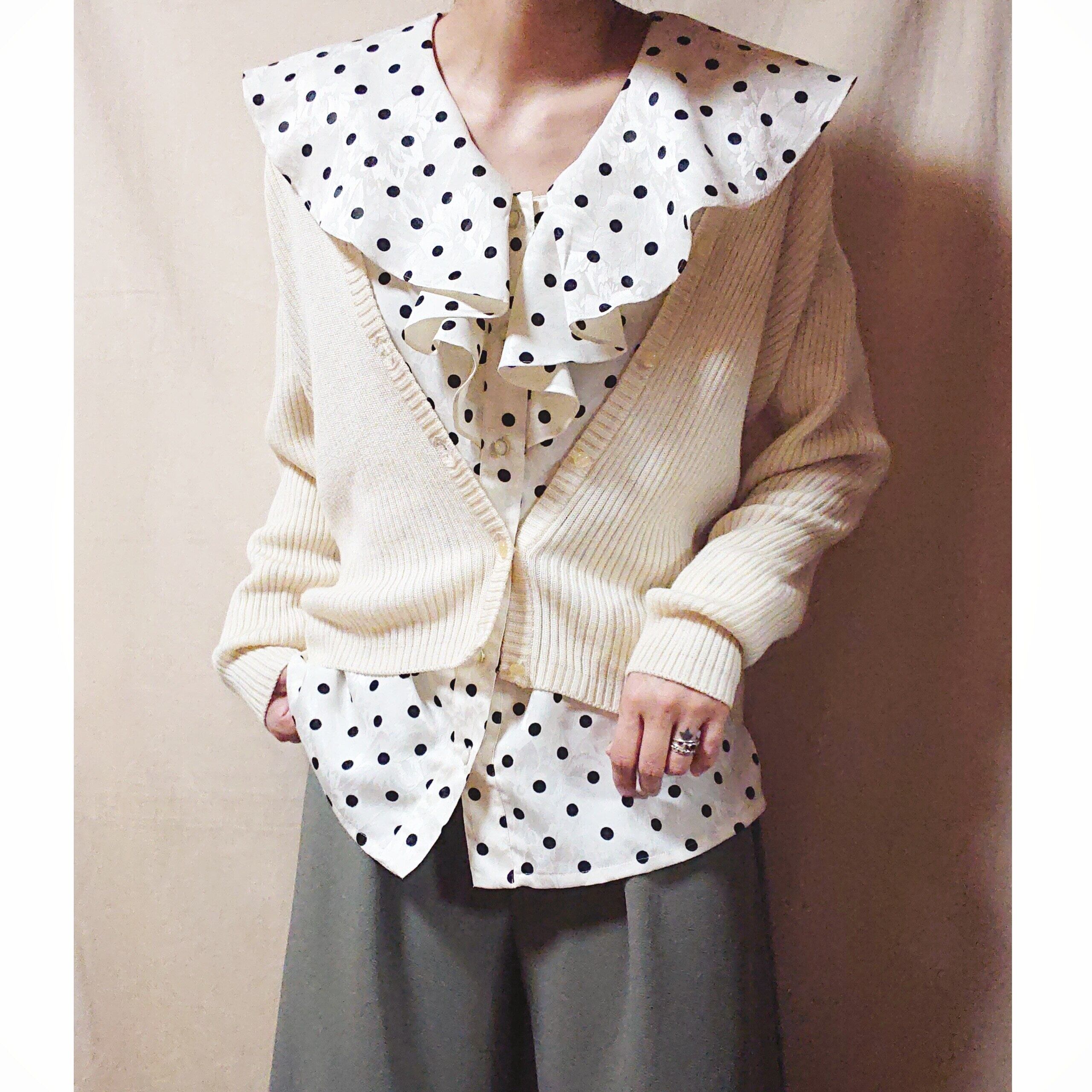 春にぴったりなドット柄が、たまらなく素敵なvintageのブラウスです。