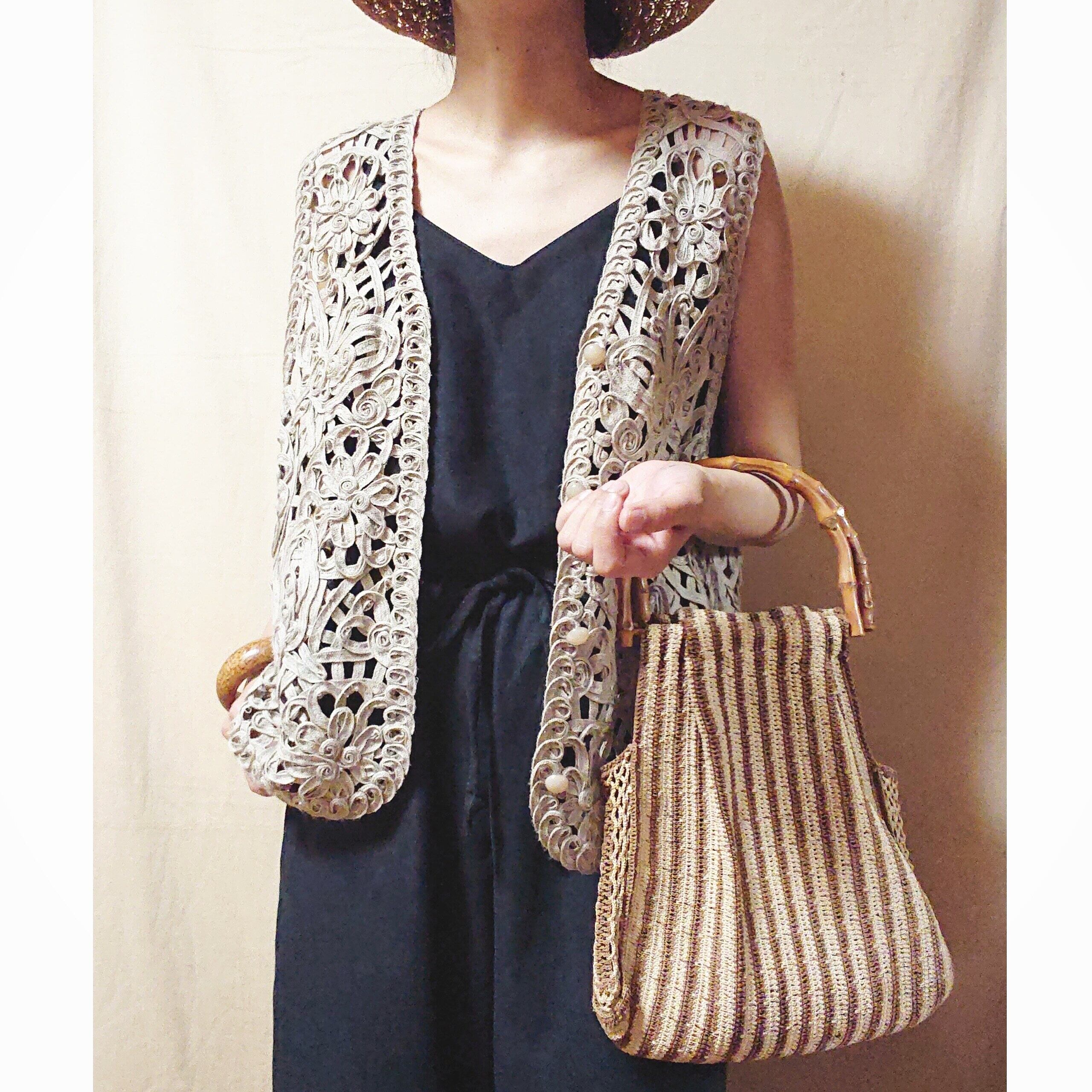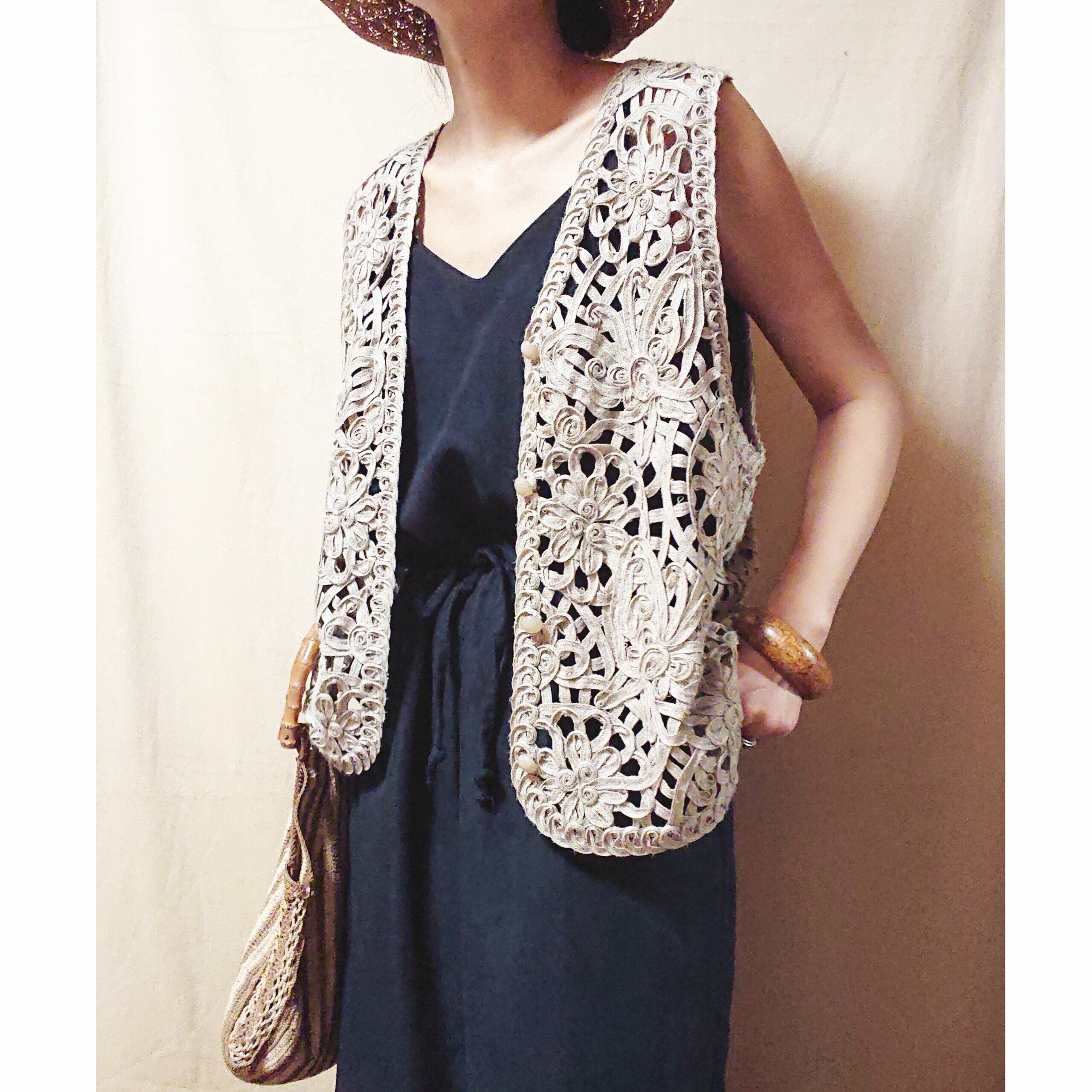 クロシェ編みがたまらなく素敵な、ヴィンテージのベストです。