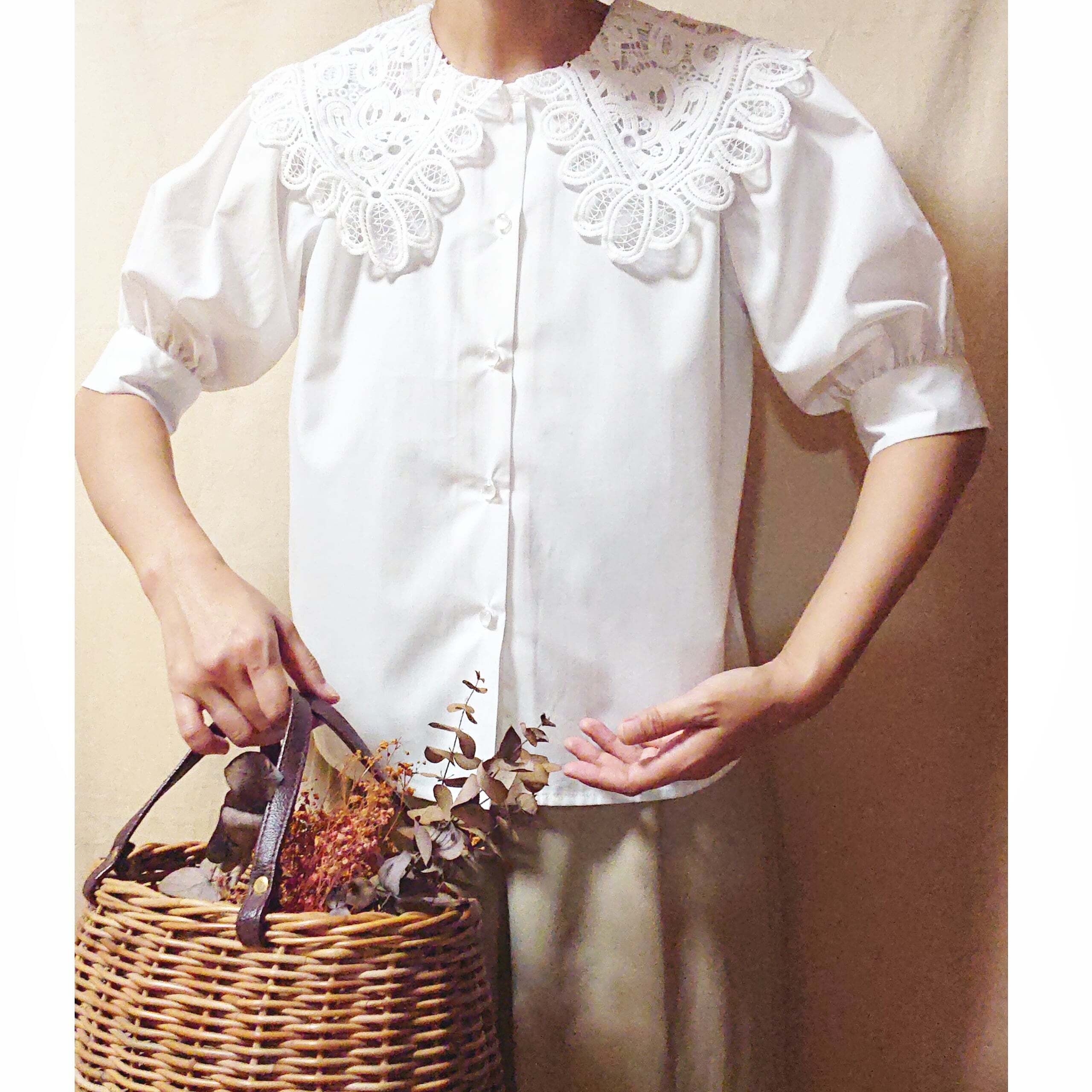 存在感のあるバテンレースカラーが、たまらなく素敵なヴィンテージのブラウスです。