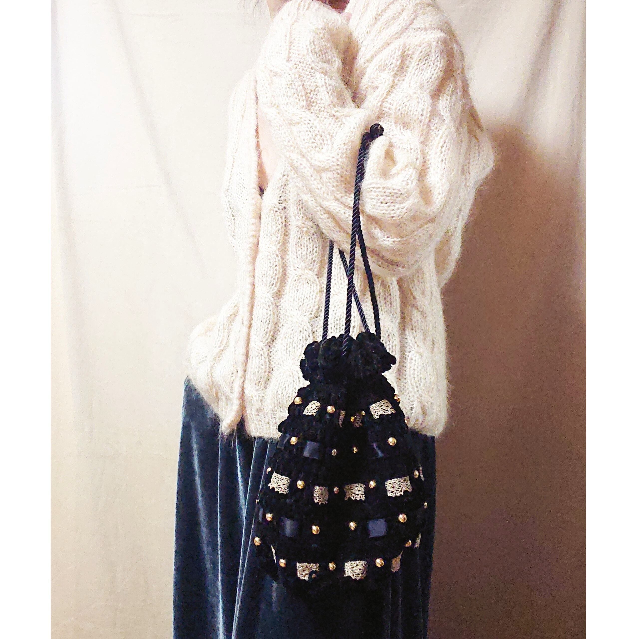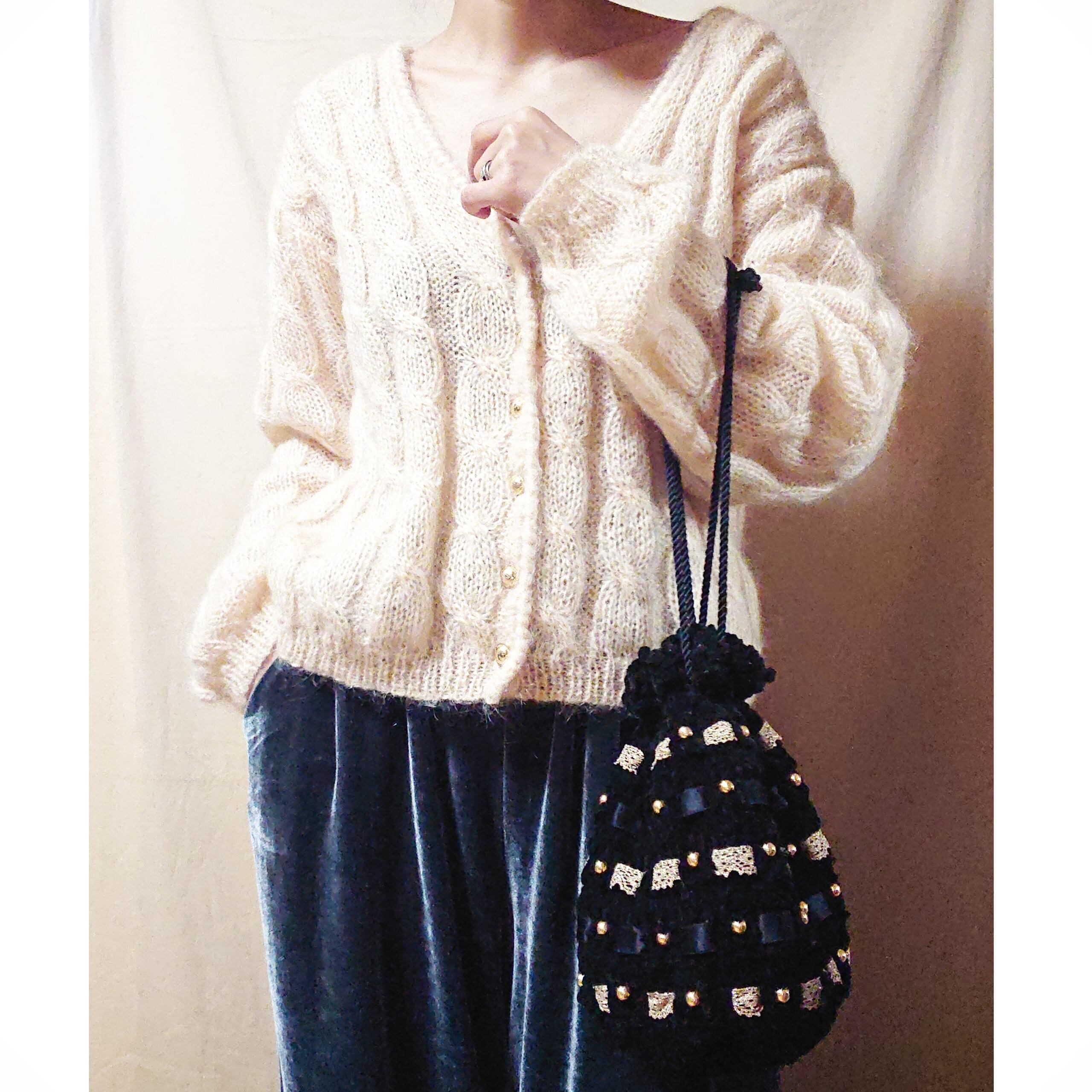 ニットにビーズやリボンが編み込まれた、こだわりのあるデザインに、コロンとしたような丸みのあるフォルムがすごく素敵です。