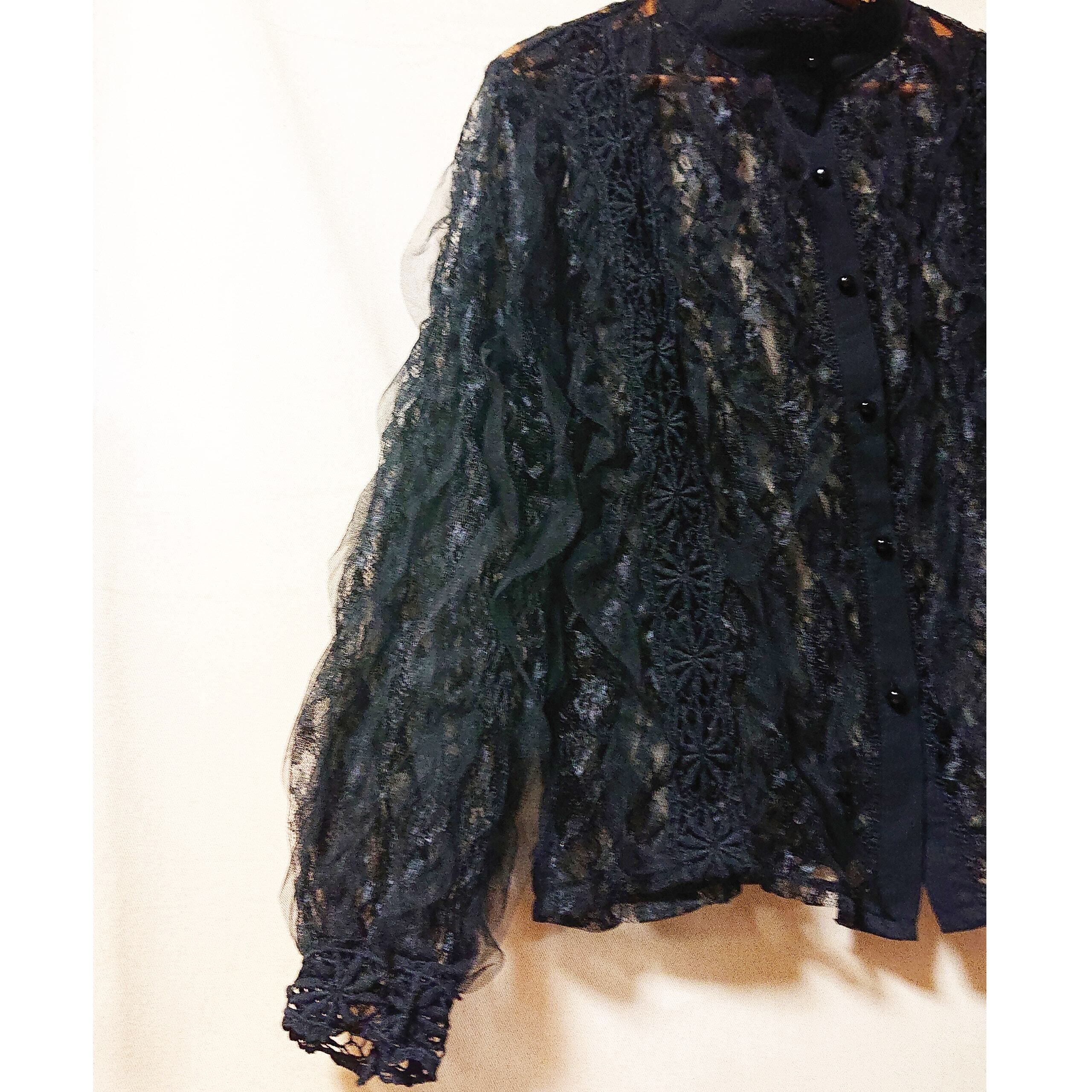 たっぷりのレースがたまらなく素敵な、ヴィンテージのブラウスです。