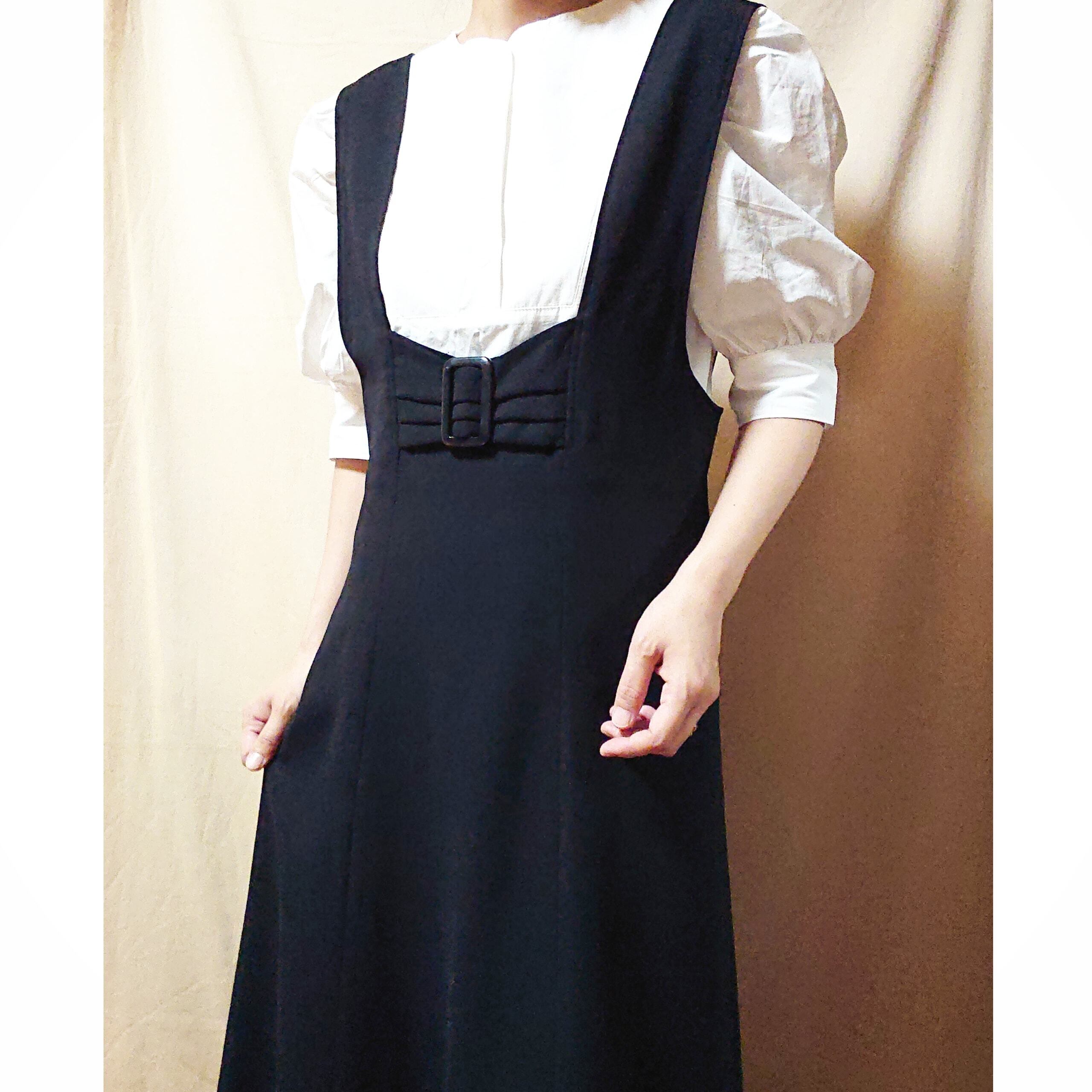 サロペットワンピースようなタイプで、合わせるインナーで雰囲気が変わり、色々なスタイリングを楽しんで頂けます。