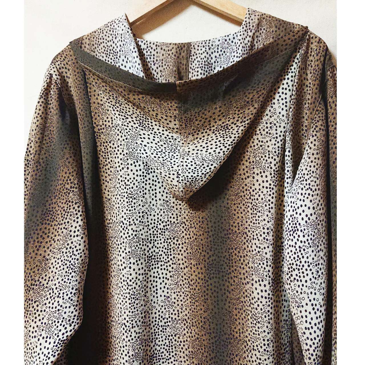 一見レオパード柄に見えますが、よく見るとドット柄のような癖のある柄で、遊び心のある個性的な一着です。