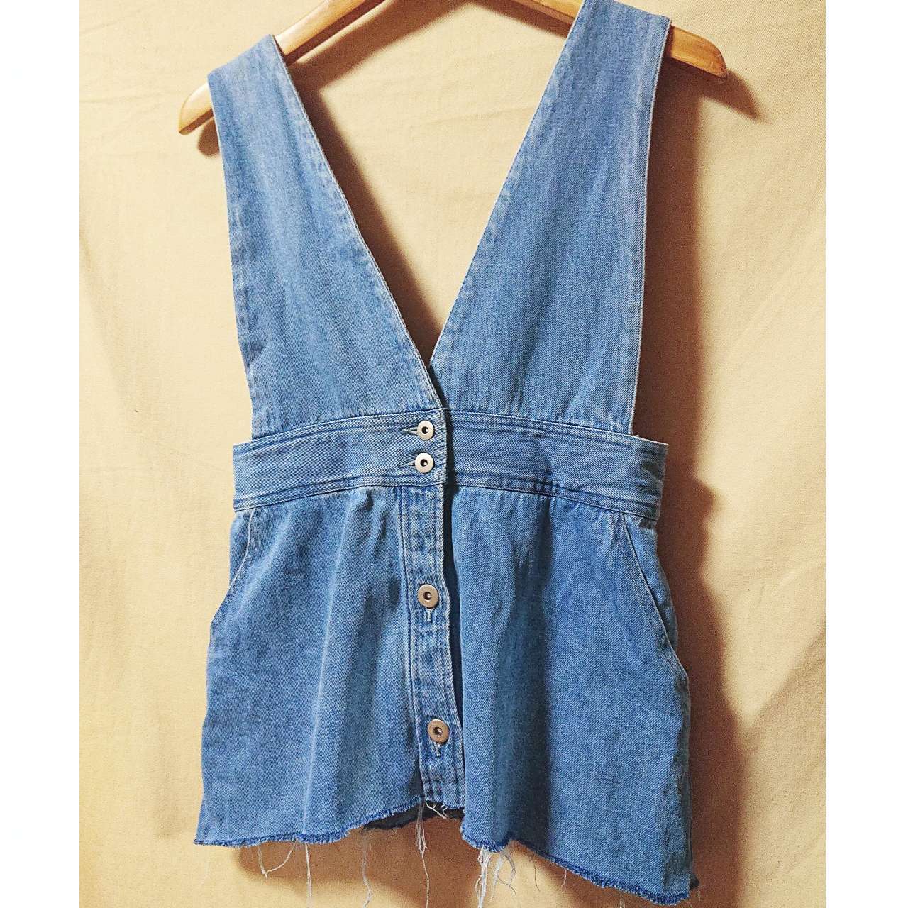 ヴィンテージのデニムワンピースを、ベストにリメイクした、とても可愛い一着です。