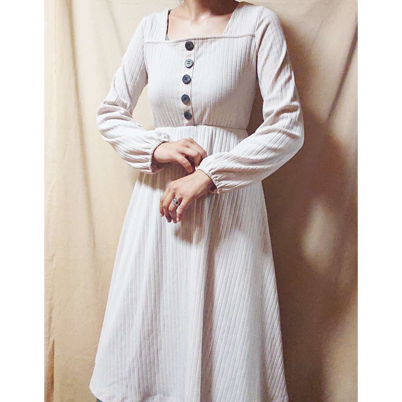 また、シンプルなタイプなので、アウターやベストなどを重ねる際にも、使いやすいタイプのワンピースです。