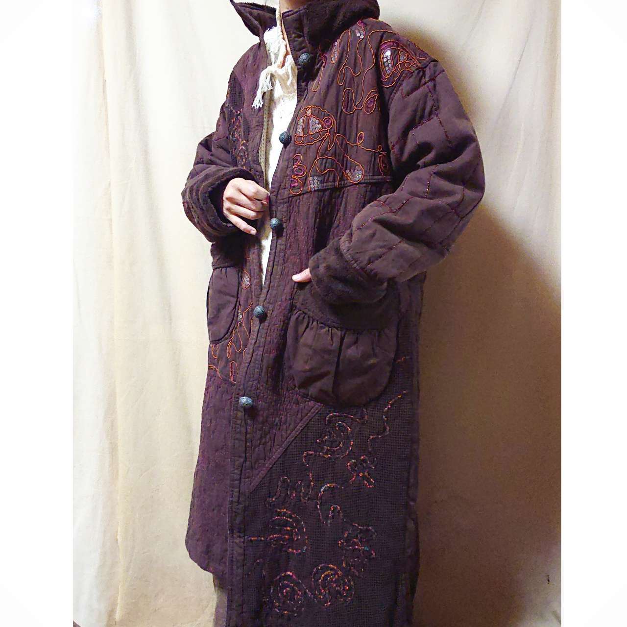 vintage*embroidery & fur long coat