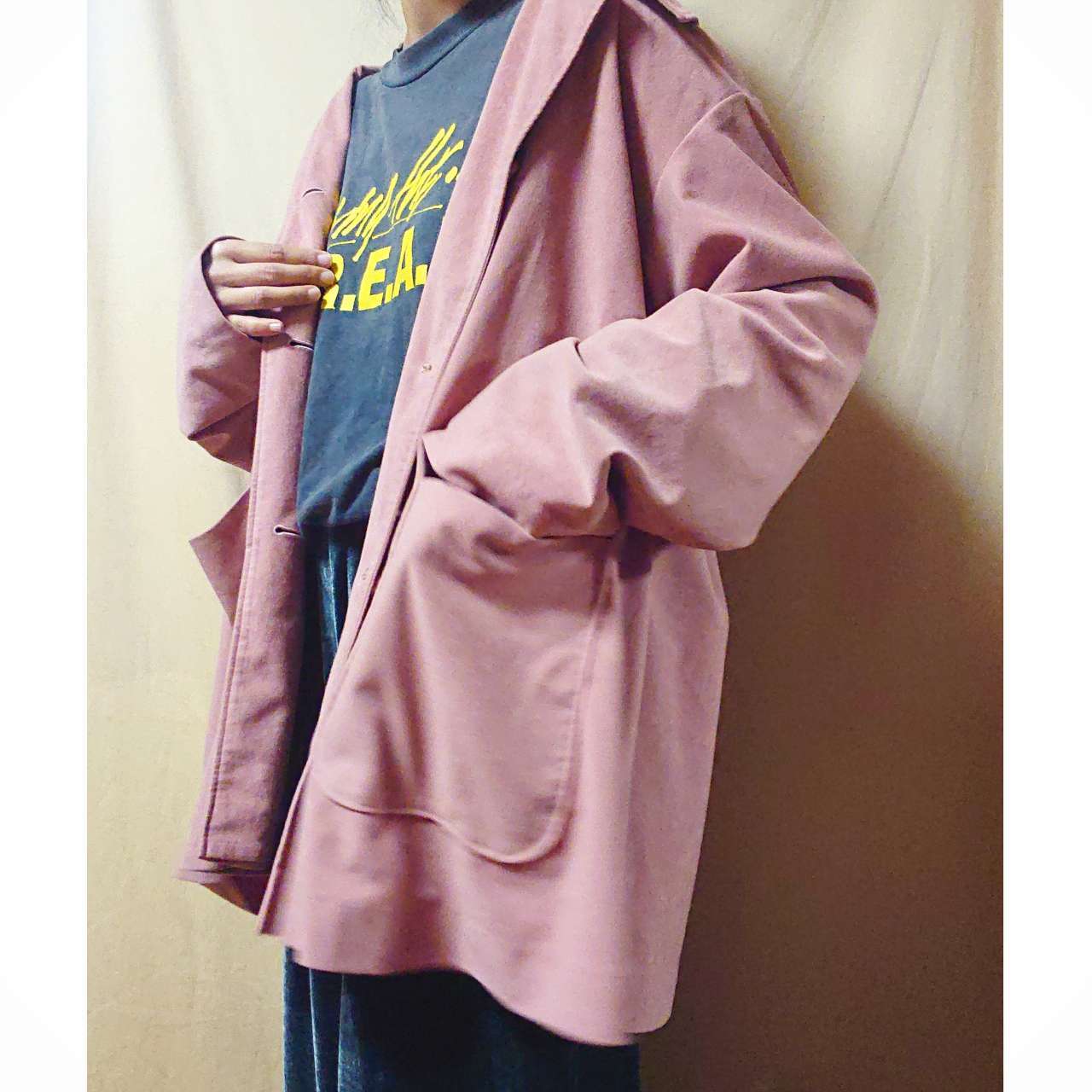 柔らかいフェイクスウェードなので、シャツ感覚のようにゆるく着れるようなジャケットです。