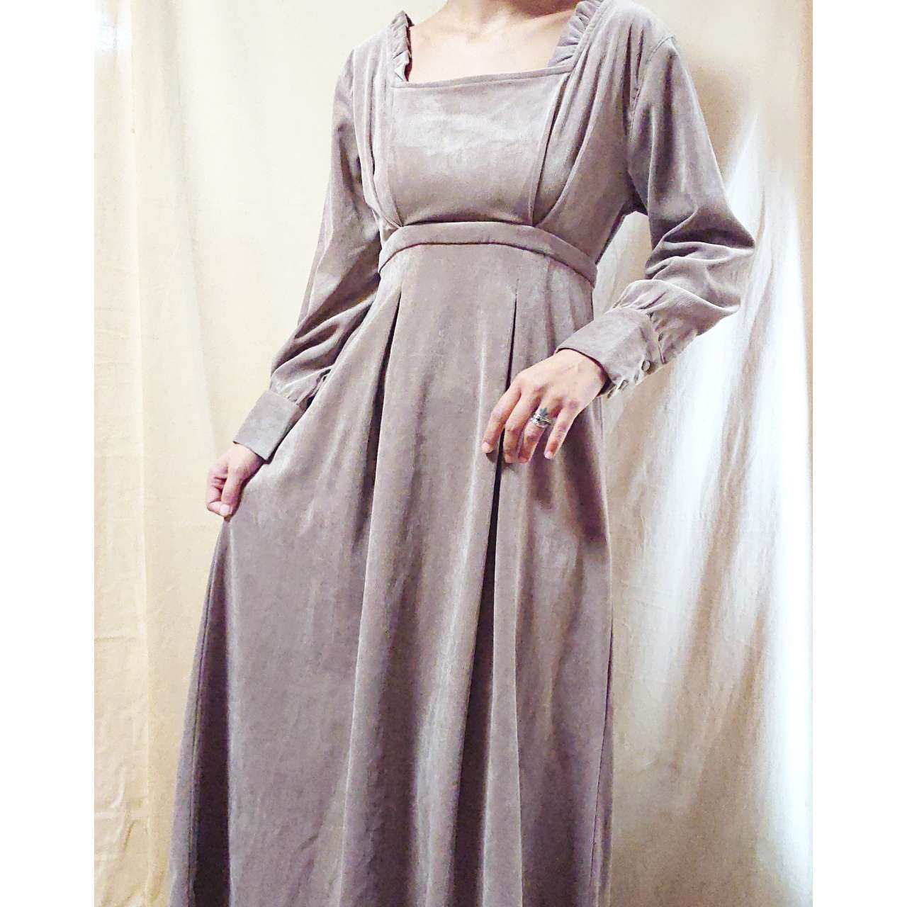 シルエットがたまらなく素敵な、ヴィンテージのコーデュロイワンピースです。