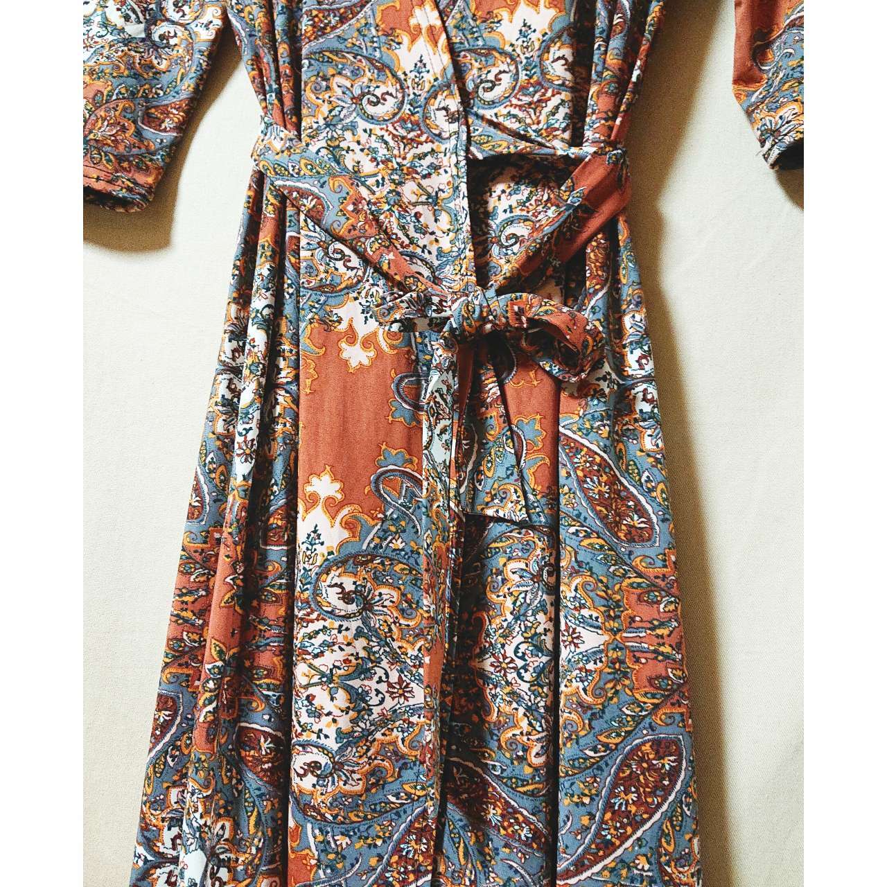 雰囲気たっぷりなペイズリー柄と、カシュクールタイプのデザインが、とても素敵なヴィンテージのワンピースです。