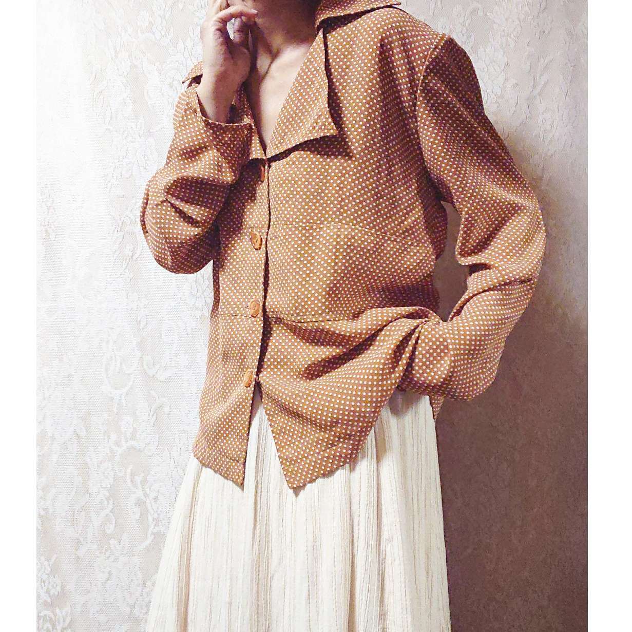 ダブルカラーデザインが個性的な、ヴィンテージのドット柄シャツです。