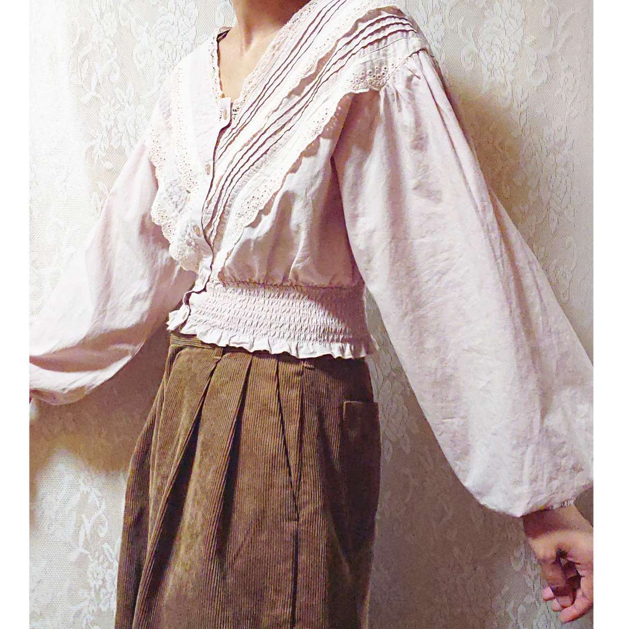 レースデザインや、ボリュームスリーブデザインがたまらなく素敵な、ヴィンテージのトップスです。