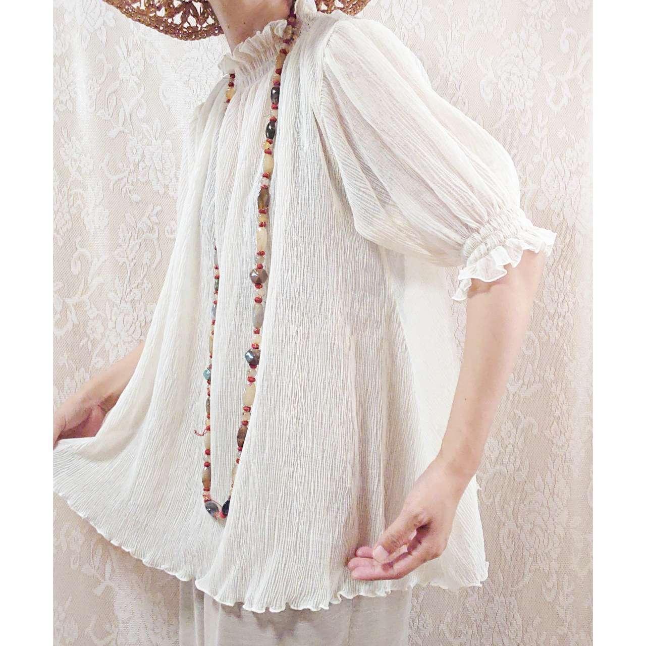 フリルデザインのスタンドカラーが、たまらなく素敵なヴィンテージのトップスです。