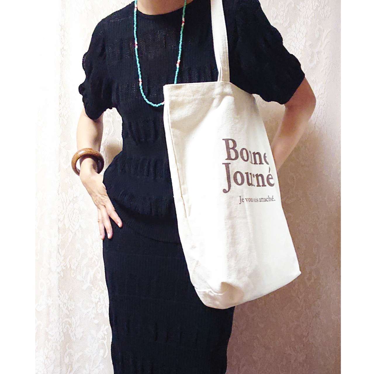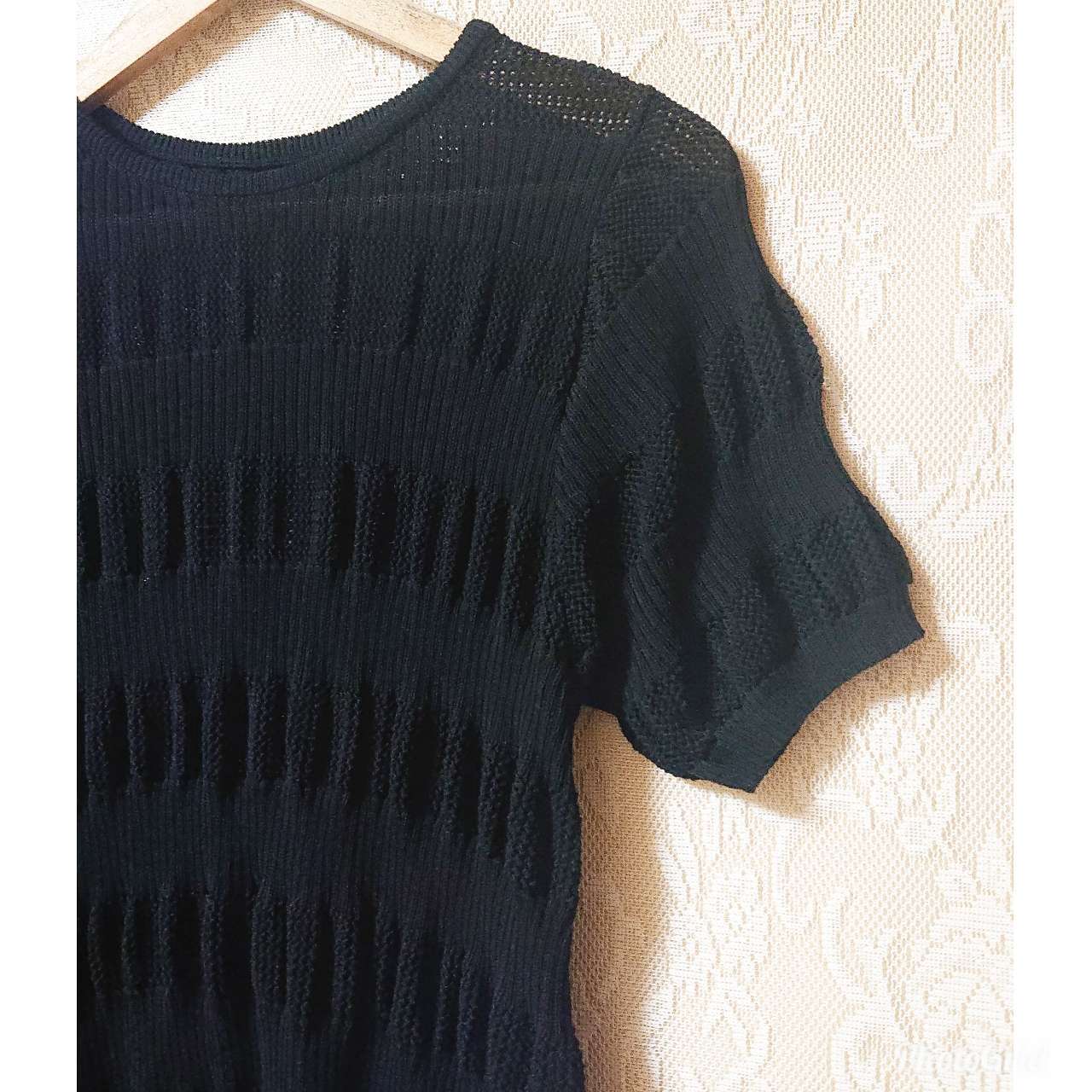 ブラックカラーでも、ほどよいメッシュデザインと、ほどよい透け感のある素材なので、重たく見える感じもありません。