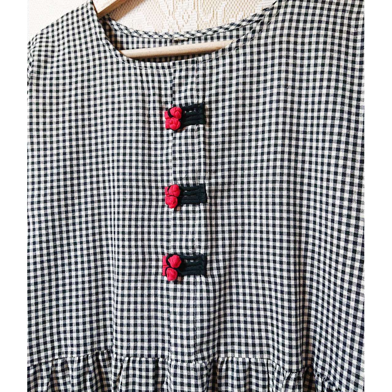 胸元はチャイナボタンデザインになっていて、ギンガムチェック柄との、アンバランス感が凄くおしゃれです。