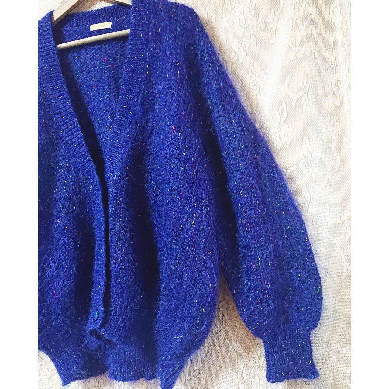 モヘアのニット感と綺麗なブルーカラーが、たまらなく素敵な、ヴィンテージのニットカーディガンです。