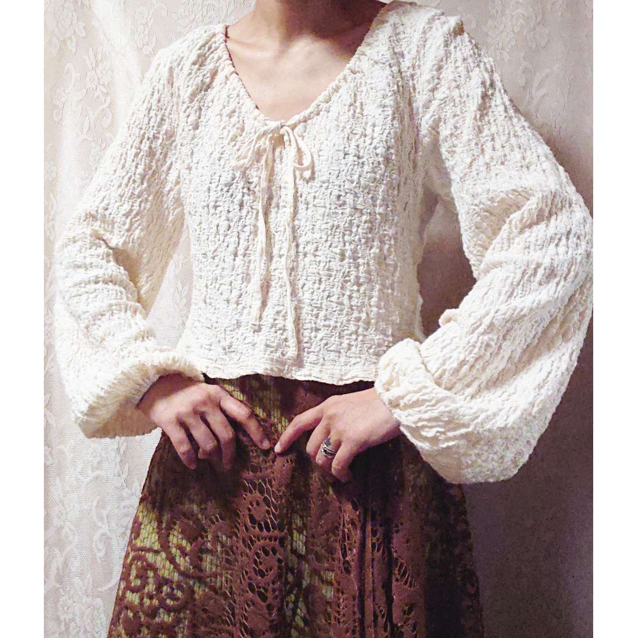 クリンクル加工デザインがとても素敵な、ヴィンテージのトップスです。
