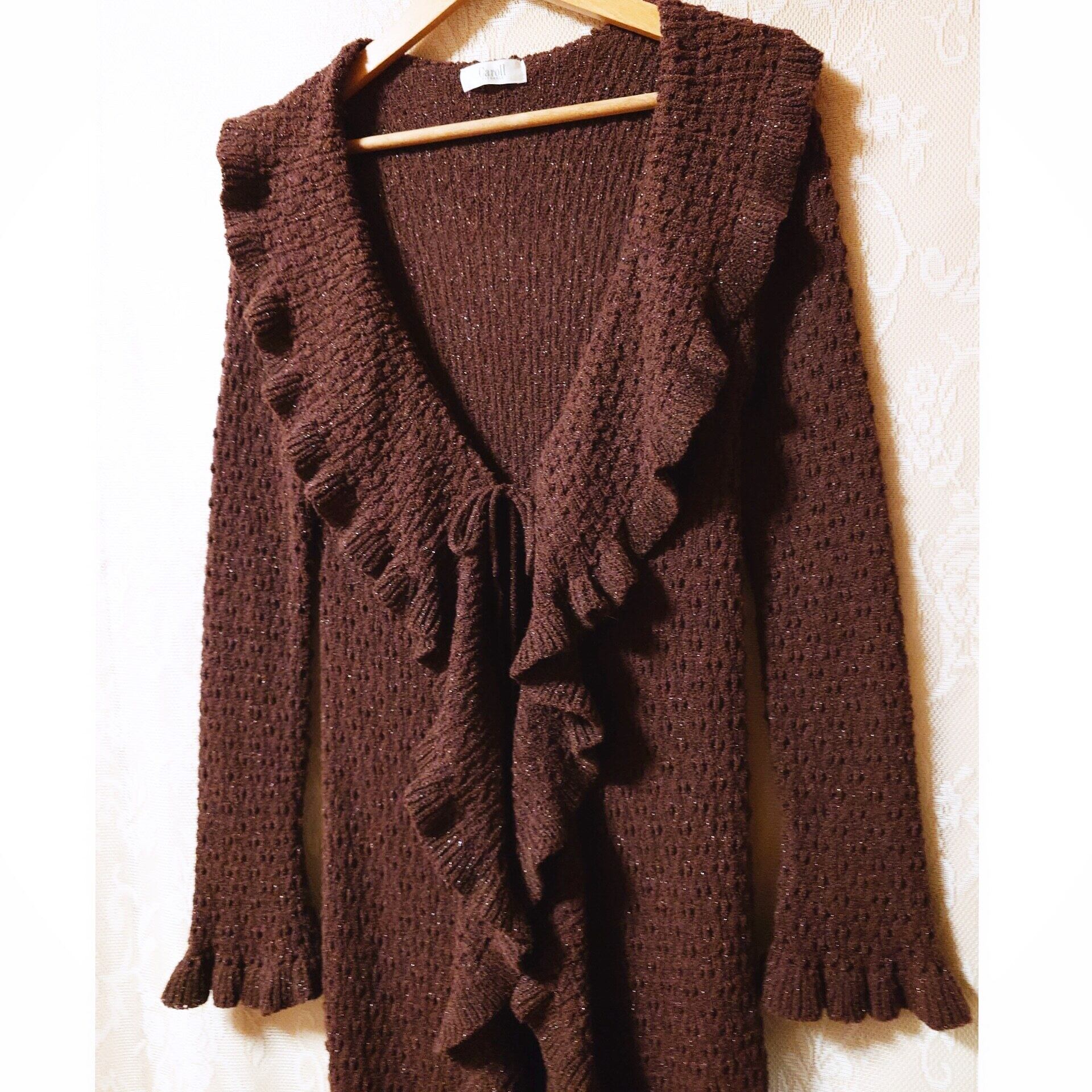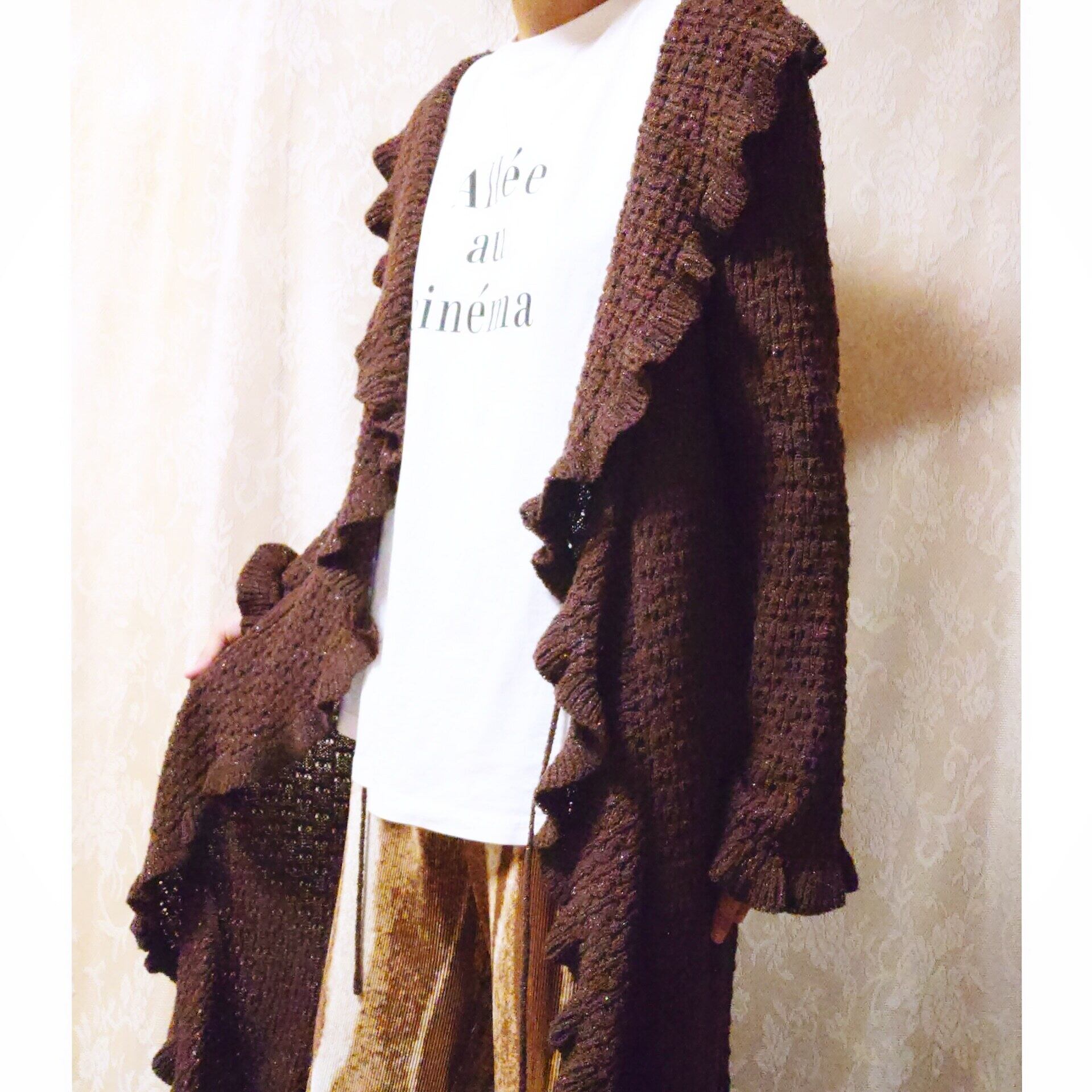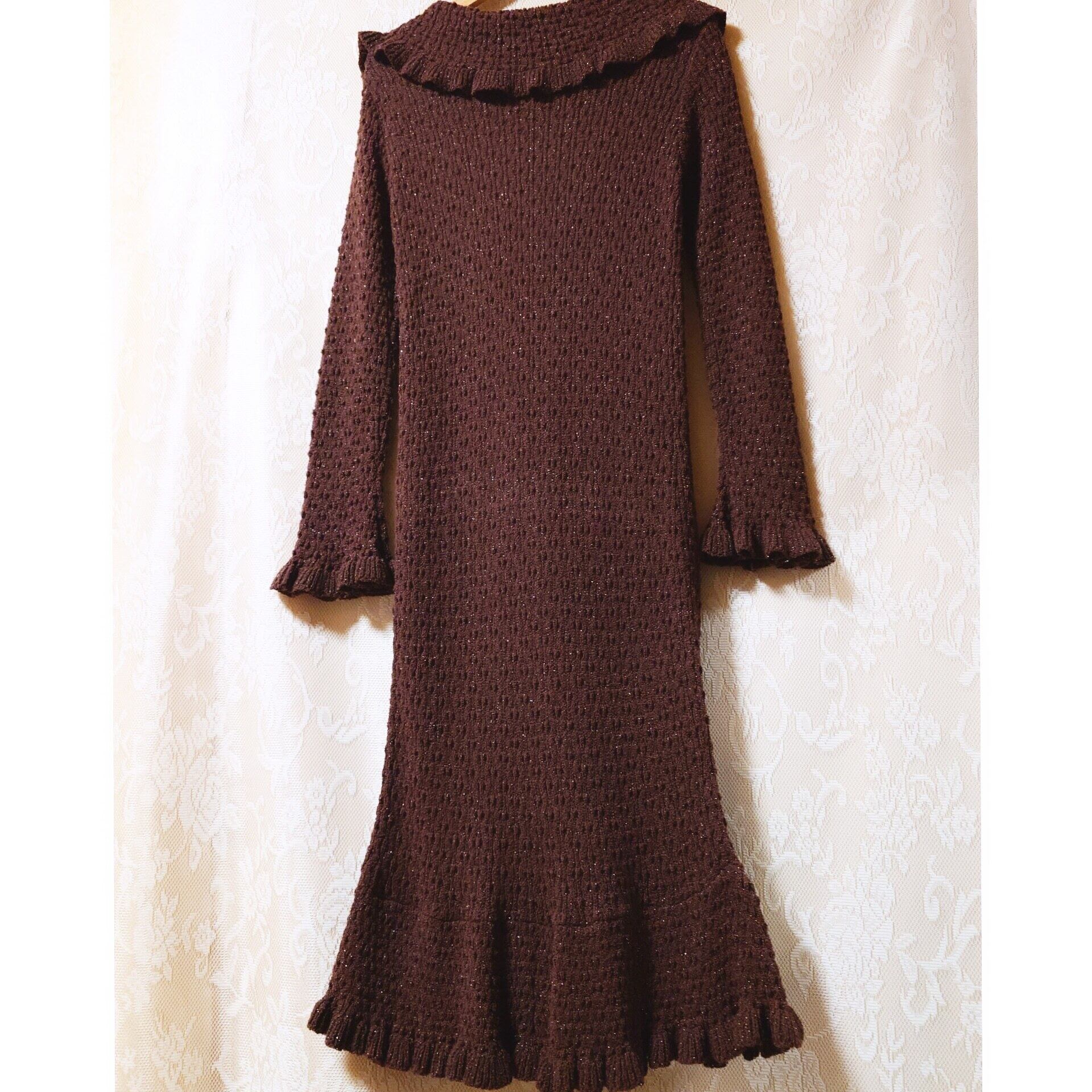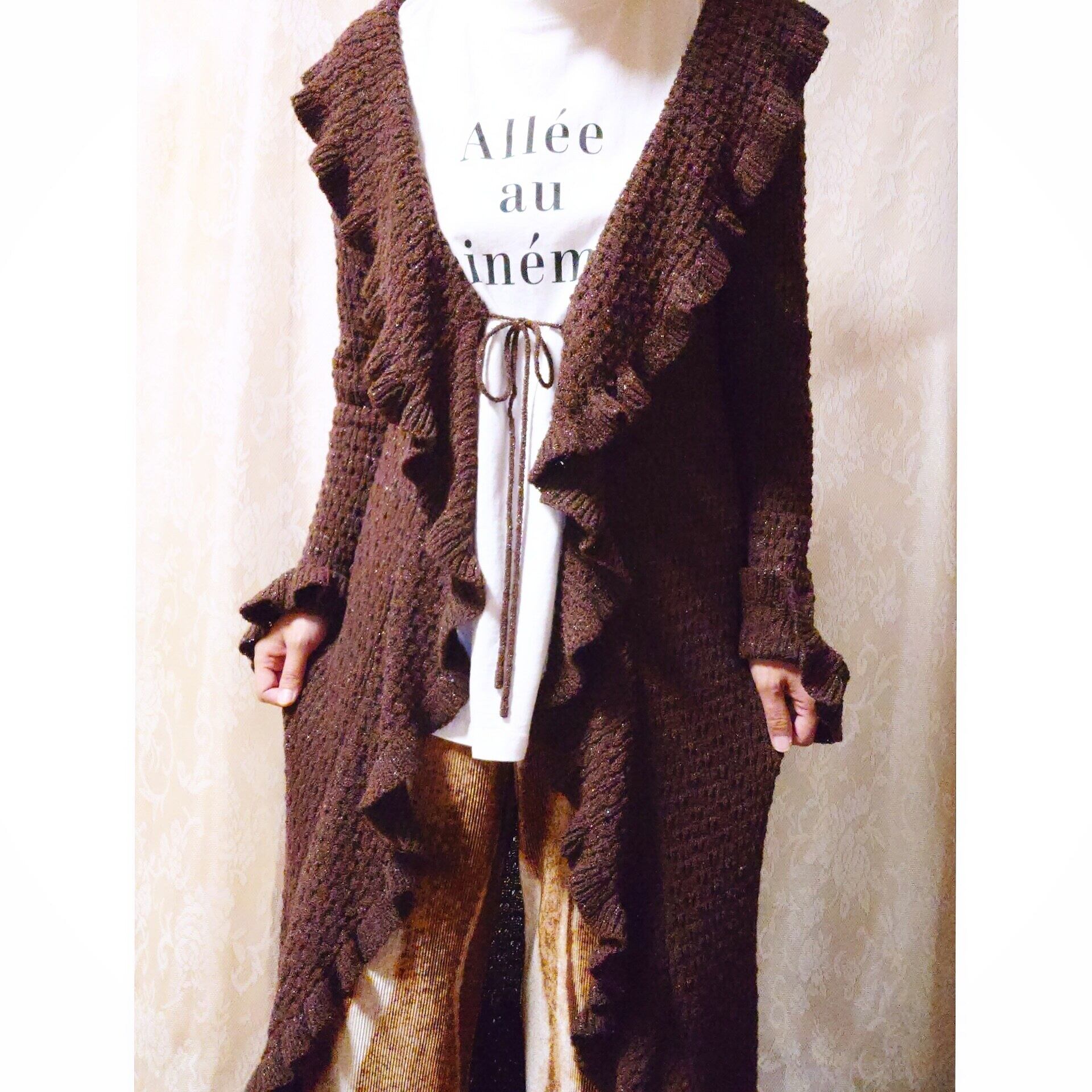 たっぷりのフリルデザインがたまらなく素敵な、ヴィンテージのニットガウンです。