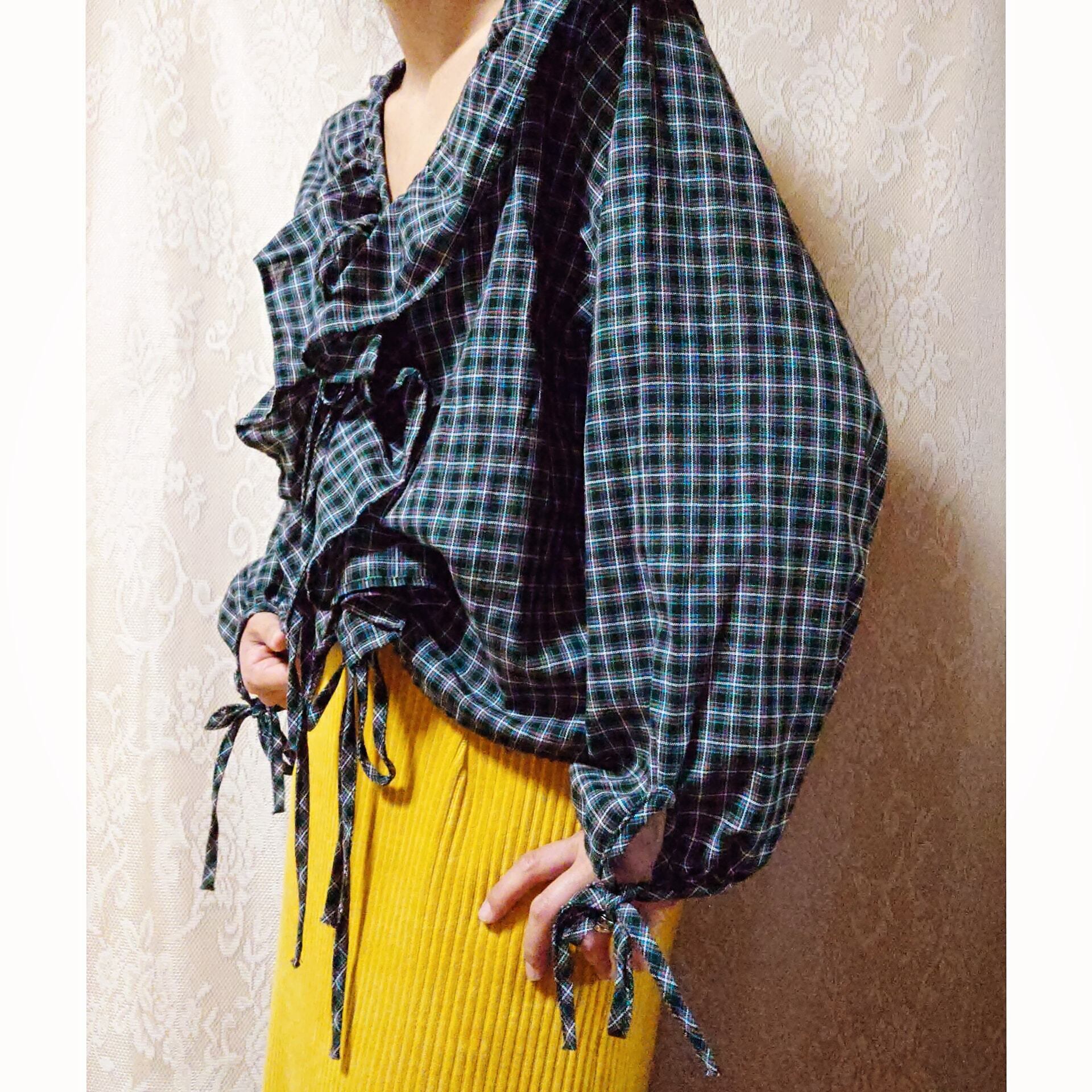 細かいチェック柄がベースなので、甘くなりすぎずバランスの取れた一着です。