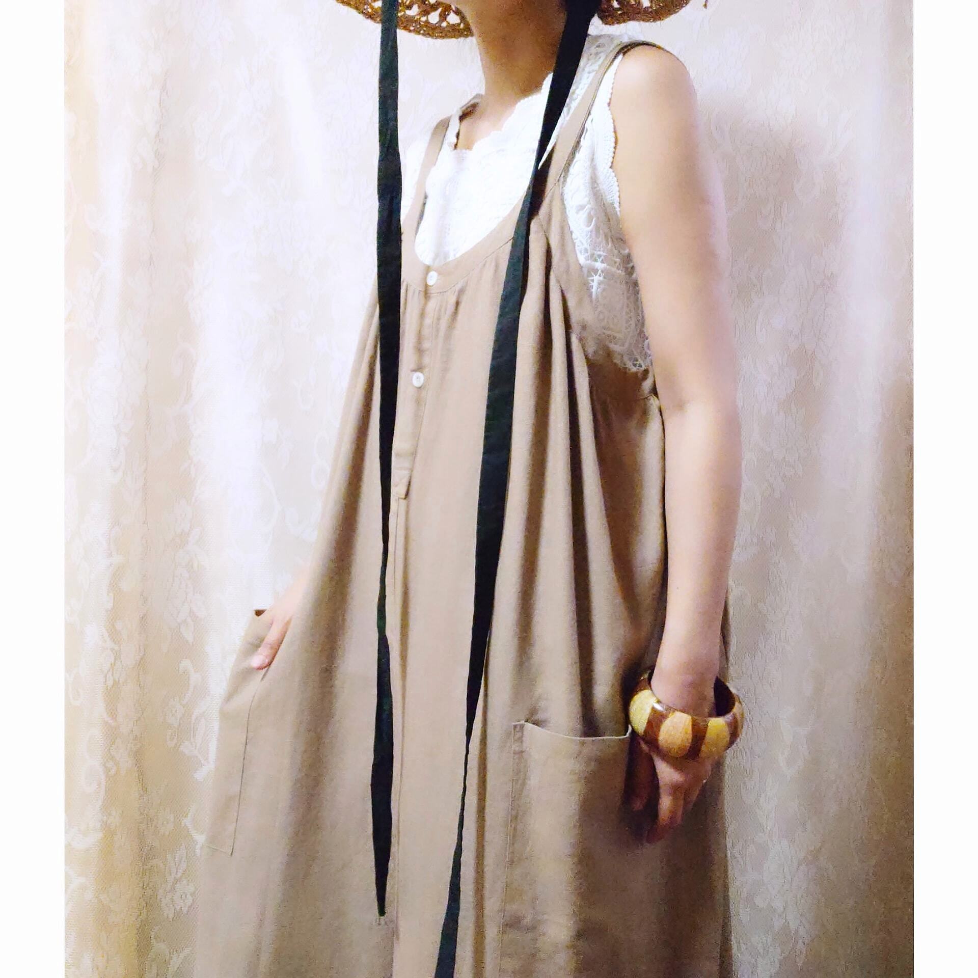 リネン素材のとても可愛い、ヴィンテージのサロペットです。