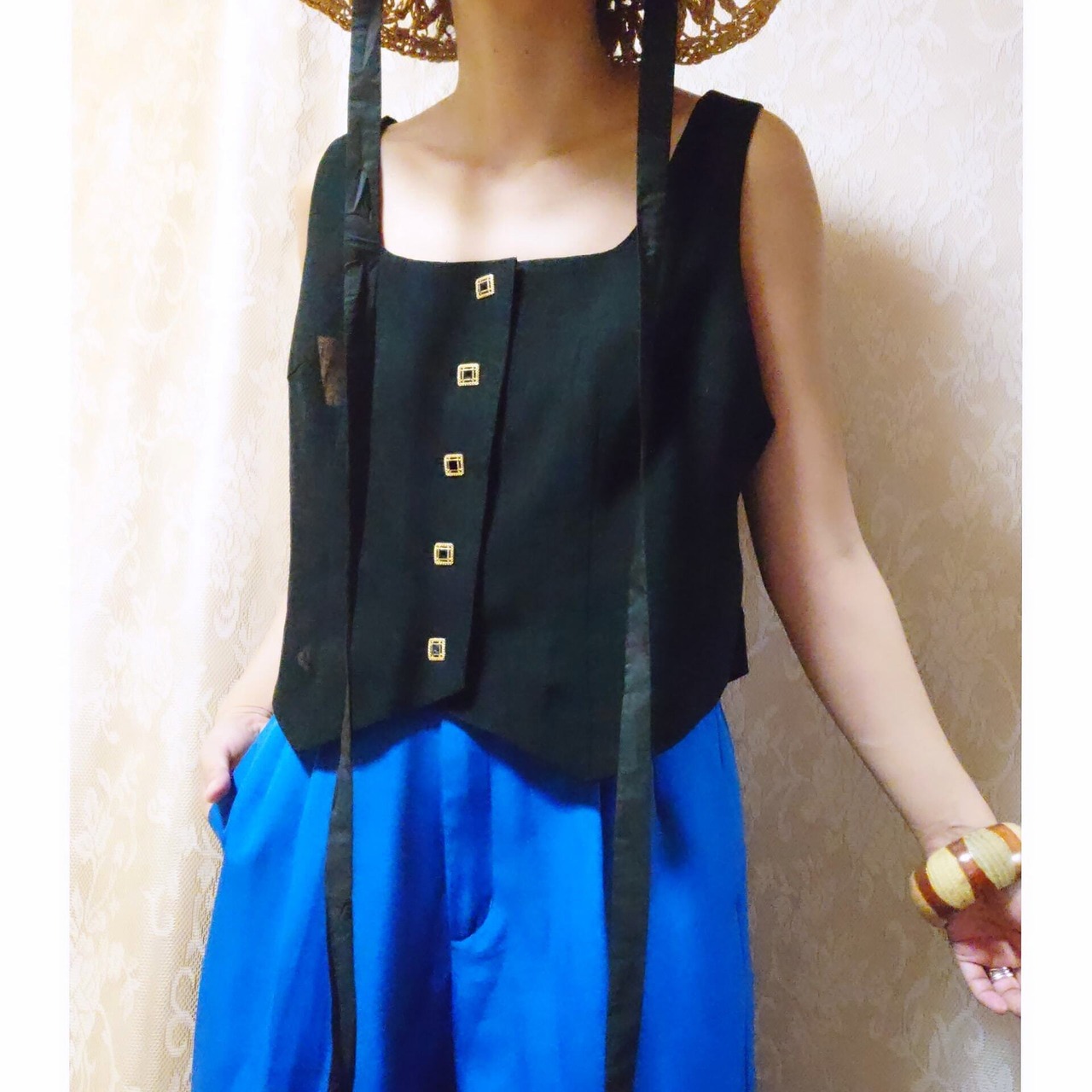 デザインがとてもおしゃれな、ヴィンテージのリネンベストです。