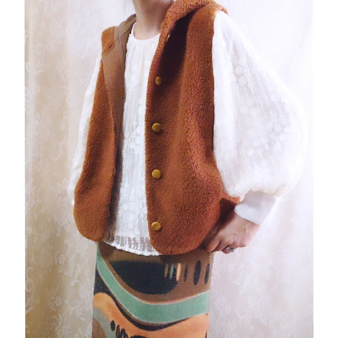 ボアのモコモコ感がたまらなく可愛い、ヴィンテージのベストです。