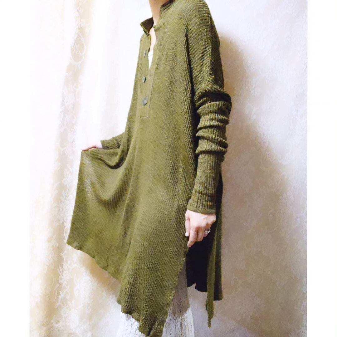深めのスリットが入ったたまらなく素敵な、ヴィンテージのロングニットです。