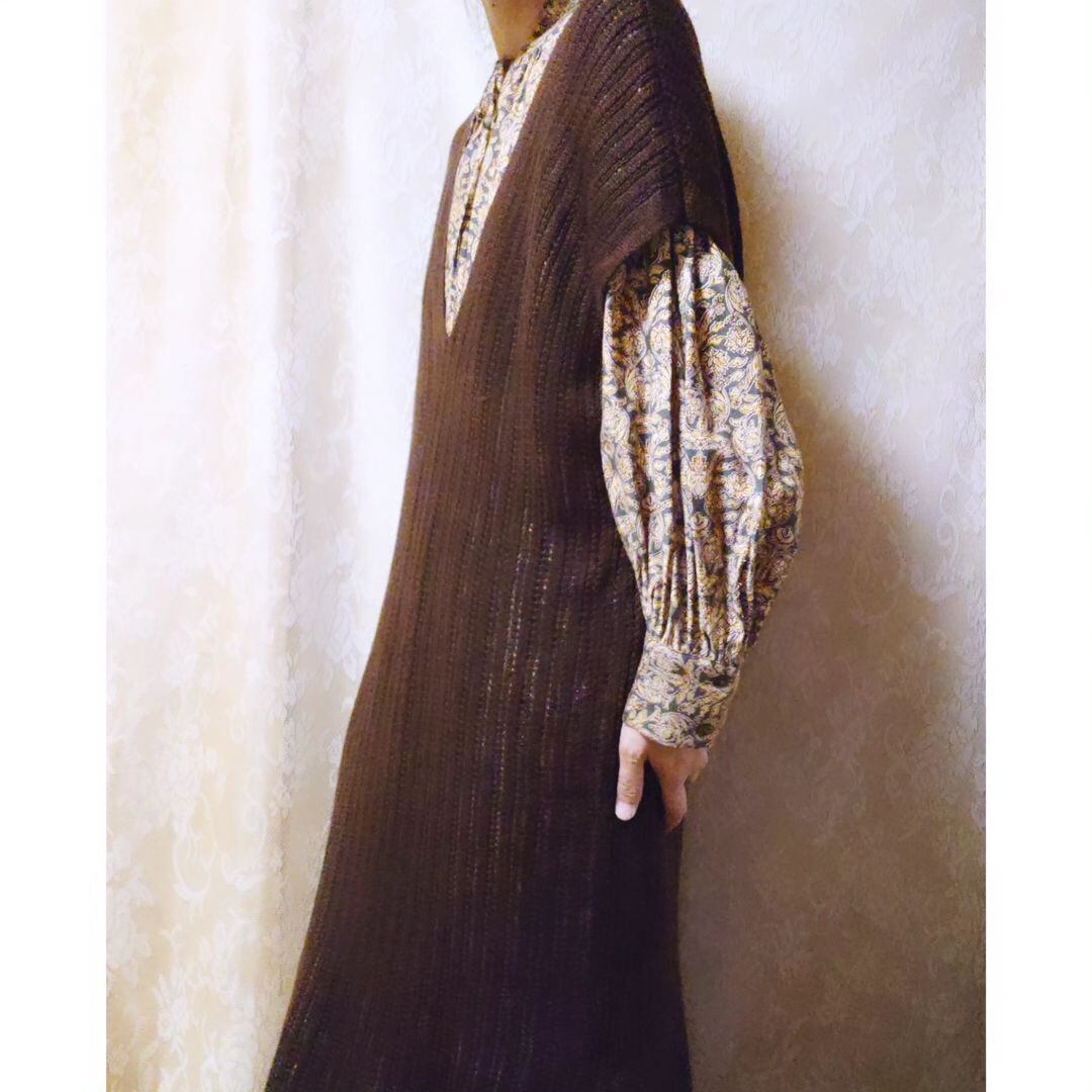 ベストタイプのようなデザインがとてもおしゃれな、ヴィンテージのニットワンピです。