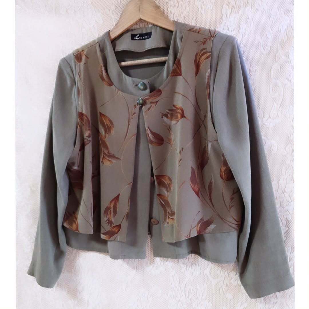 花柄のベストを重ねたような個性的なデザインで、目を惹く一着です。